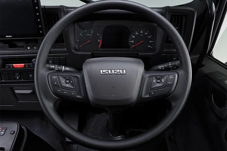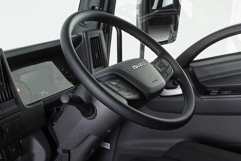 Tilts and telescopes at a touch, so you’ll readily arrive at a driving position that’s still comfortable at the end of a long shift. And that’s just one of Isuzu’s clever comforting touches.
