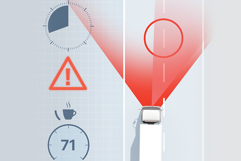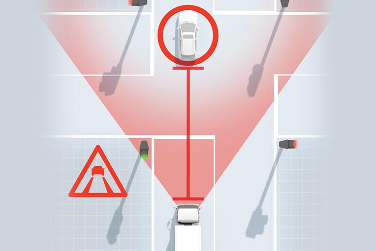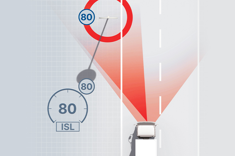 FCW scans the road ahead to detect vehicles, pedestrians, bicycles, or other obstacles. Using a stereo camera system enables the truck to judge distance and relative speed in a similar way to human eyesight. If it senses a potential collision, it provides visual and audible warning to the driver.