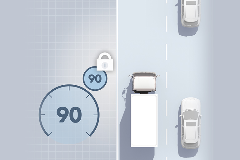 DWS helps drivers to maintain a safe distance from the vehicle ahead by giving a warning if a pre-set distance is reached. The driver can choose from four pre-set minimum distances.