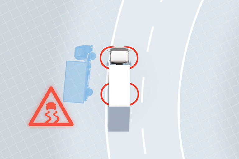 With active safety technology on board, a system of sensors constantly monitor the truck’s performance and surroundings. The aim is to prevent accidents before they happen, but if a collision is unavoidable, the truck's passive safety features help reduce the impact.